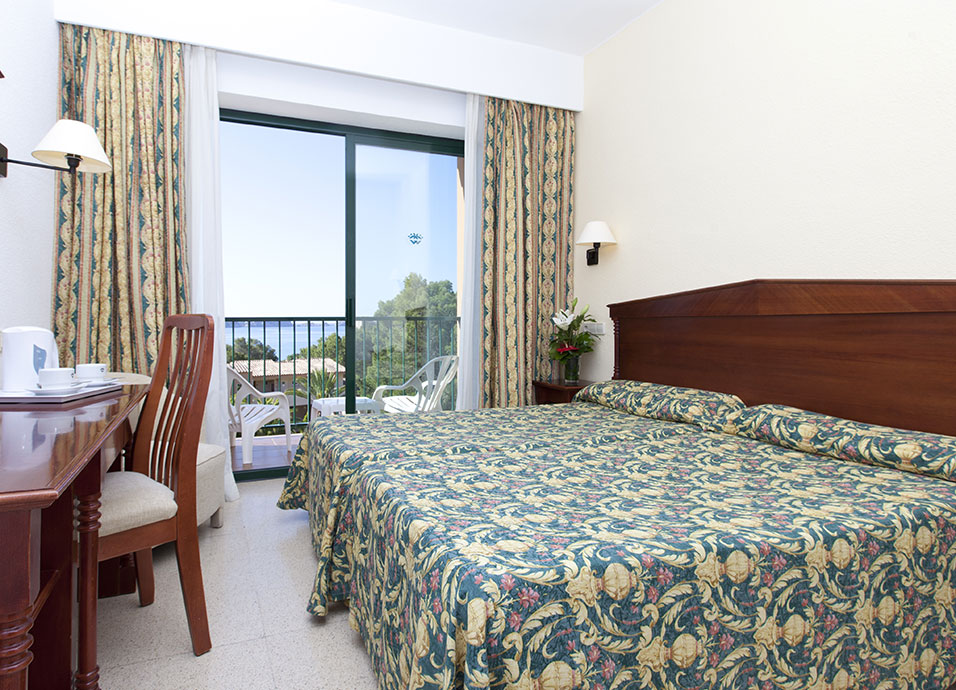 Habitaciones Doble Estándar vista mar, Disfrute de unas maravillosas y espectaculares vistas al mar mediterráneo y a la bahía de Paguera. Estas habitaciones están ubicadas en el edificio principal.