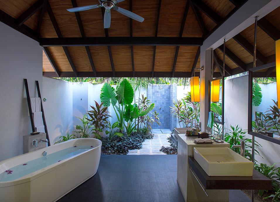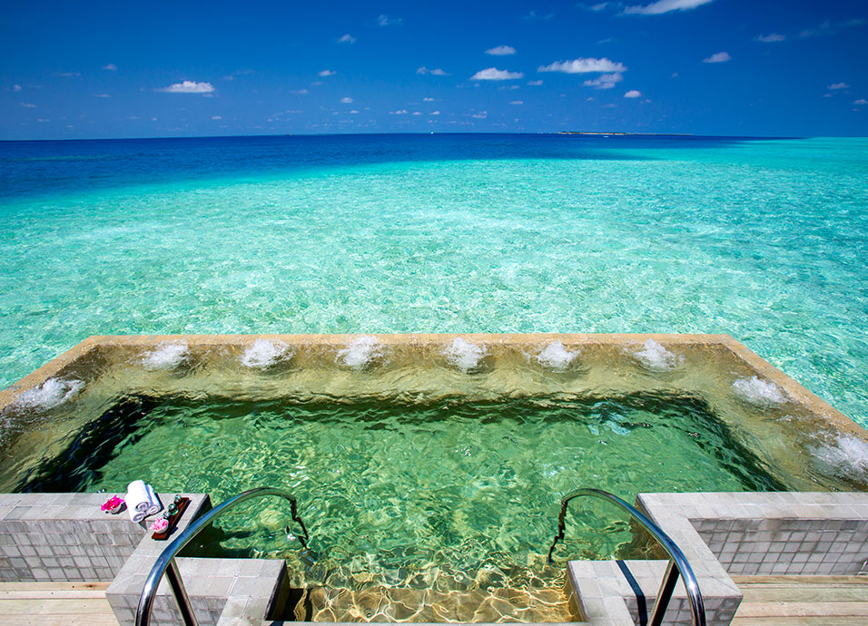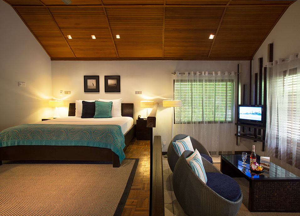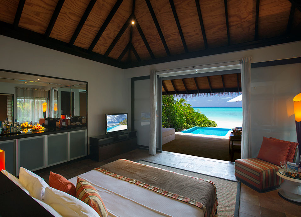 Alojamiento: 4 Deluxe Bungalows, 47 Deluxe Villas, 14 Beach villas, 16 Beach Villas con piscina, 17 Water Bungalows con piscina, 24 Water Villas, 2 Two Bedroom Deluxe Villas, 4 Water villas con piscina, 1 Deluxe villa con piscina, 1 Pool Villa and 1 Water Suite. Todas las villas cuentan con caja fuerte eléctrica, Apple TV, minibar, cafetera de cápsulas y té, teléfono y Wi-Fi gratuito, aire acondicionado y ventilador de techo.