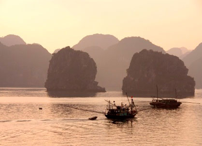 Después del desayuno, encuentro con nuestro guía en el hall del hotel. Salida por carretera hacia la Bahía de Halong que significa “el dragón que desciende del mar” en vietnamita, y según la leyenda, fue un dragón quien formó las islas de la bahía. Embarque en un maravilloso crucero con el que visitarán la bahía. Almuerzo a bordo. Acabado el almuerzo, continuaremos navegando y descubriendo miles de islas e islotes de abundante vegetación que emergen en la bahía con sus insólitas formas y diferentes tamaños. Las aguas color esmeralda de este legendario tesoro nos llevan a explorar islas sublimes como la de la Tortuga, la del Perro, la Cabeza de Hombre, etc. Debido a su singular belleza, peculiaridad geológica, riqueza biológica, importancia cultural e histórica, la Bahía de Halong fue declarada Patrimonio de la Humanidad por la UNESCO en 1994 e incluida en la lista de las Siete Maravillas Naturales del Mundo desde 2011. Más allá de la contemplación del magnífico paisaje, disfrutamos de tiempo libre o de algunas de las actividades opcionales tales como nadar, practicar kayak o participar en una demostración de cocina vietnamita en la terraza del barco. Cena y alojamiento a bordo.